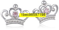 Disney Princess Sterling Silver Pink Crown Shaped Stud Earrings